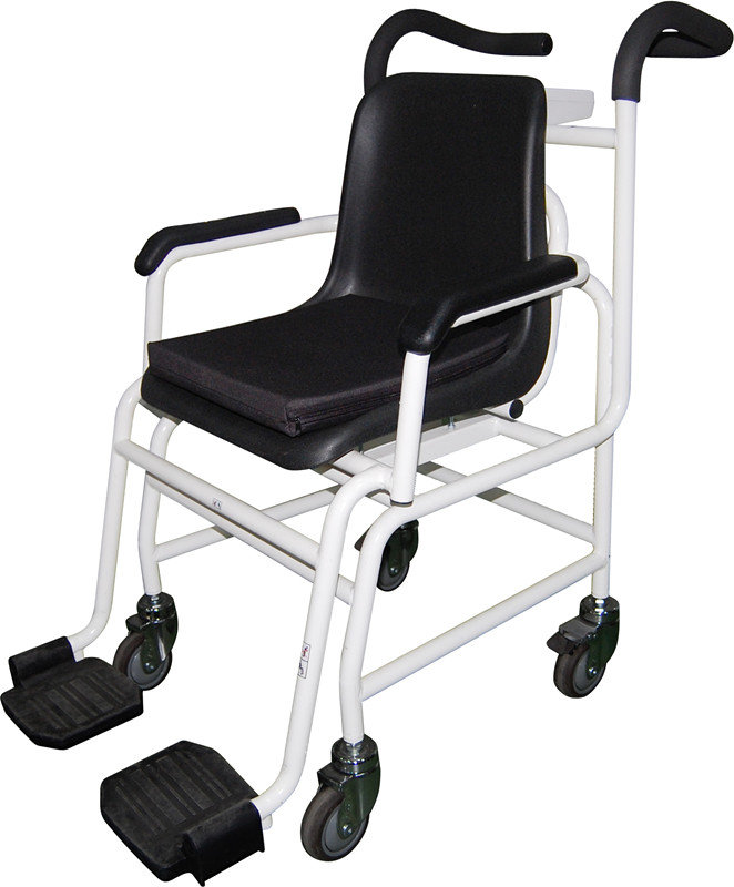 輪椅秤的概述: 電子輪椅秤: 它也具有非常重要的輔助功能:去皮功能可以準確顯示新增重量,保持功能可以在體檢中先照顧病患,然后讀出測量結果。新型的符合人體工程學設計扶手,使該秤更加容易被病人接受。